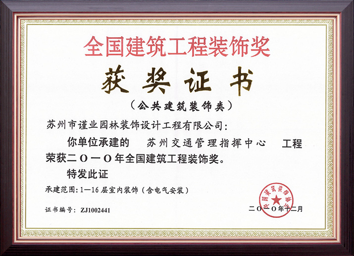 江蘇省建筑裝飾優(yōu)秀企業(yè)