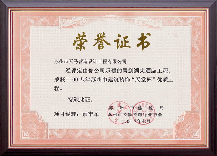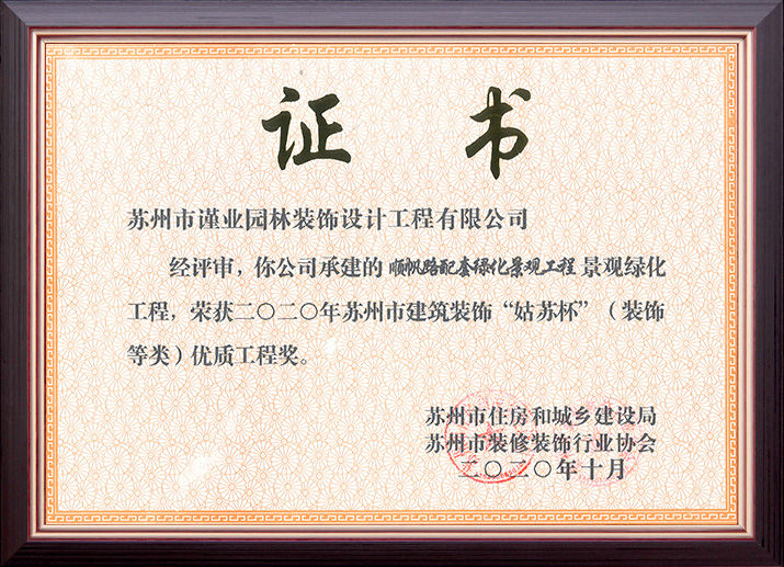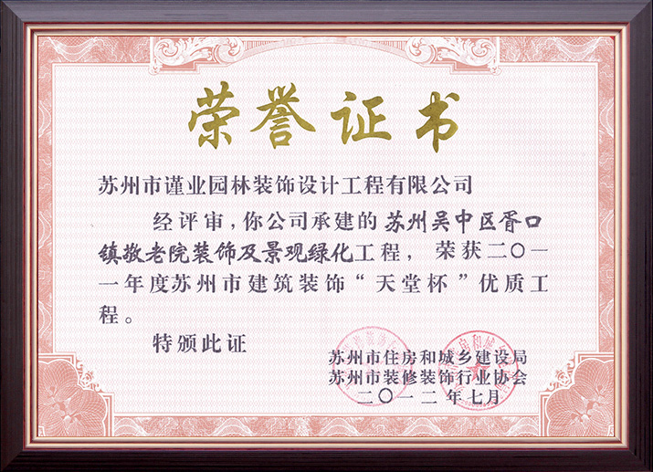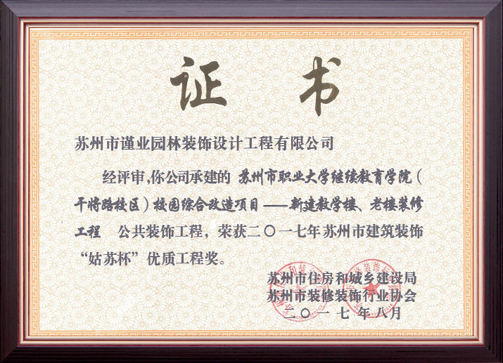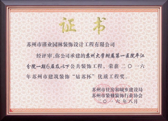 蘇州市建筑裝飾優(yōu)秀企業(yè)