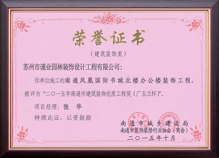 江蘇省建筑裝飾優(yōu)秀企業(yè)