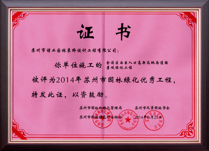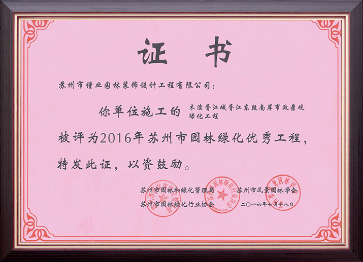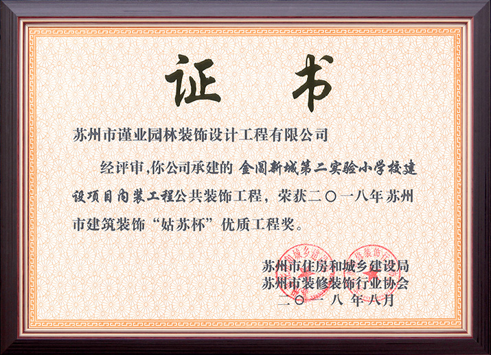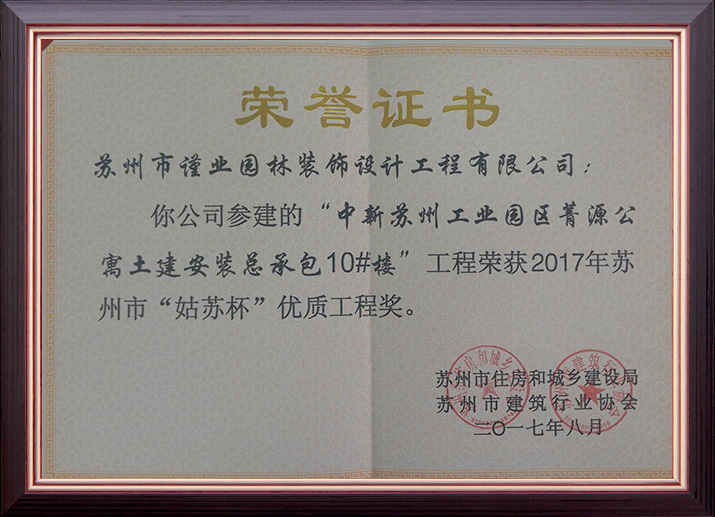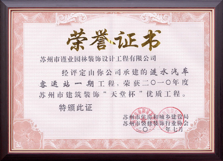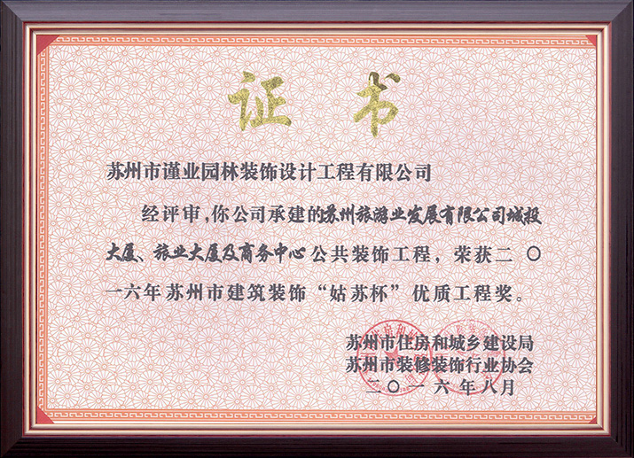 蘇州市建筑裝飾優(yōu)秀企業(yè)